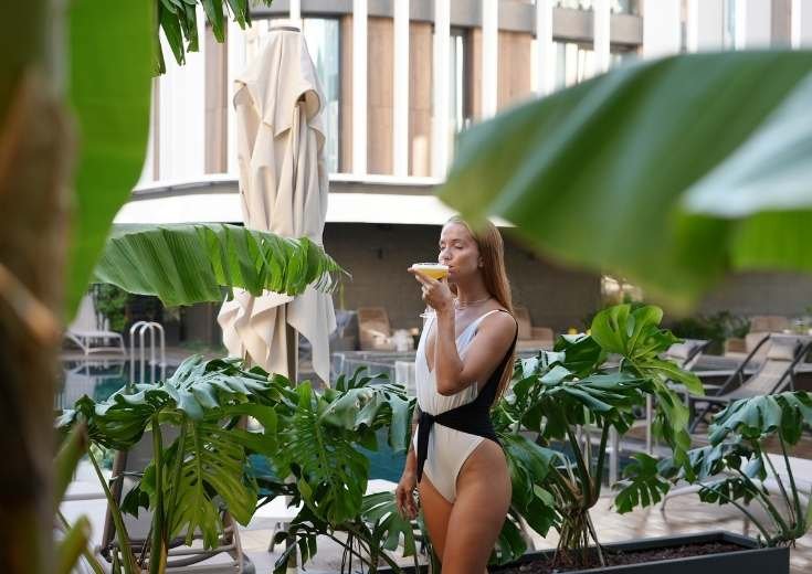Surrounding the pool is a carefully curated botanical landscape, bringing soft natural shade, a refreshing ambiance and a soothing green aesthetic throughout the day. Even though it is located in the heart of the city, this space introduces a completely different mood—an inviting fusion of nature’s calmness and contemporary urban comfort.